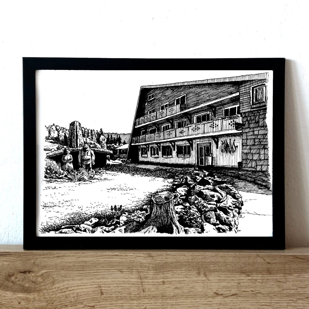 Tento obrázek je součástí Beskydského kalendáře, ve kterém zachycuji turistické chaty a rozhledny mých milovaných Beskyd, odkud pocházím.
