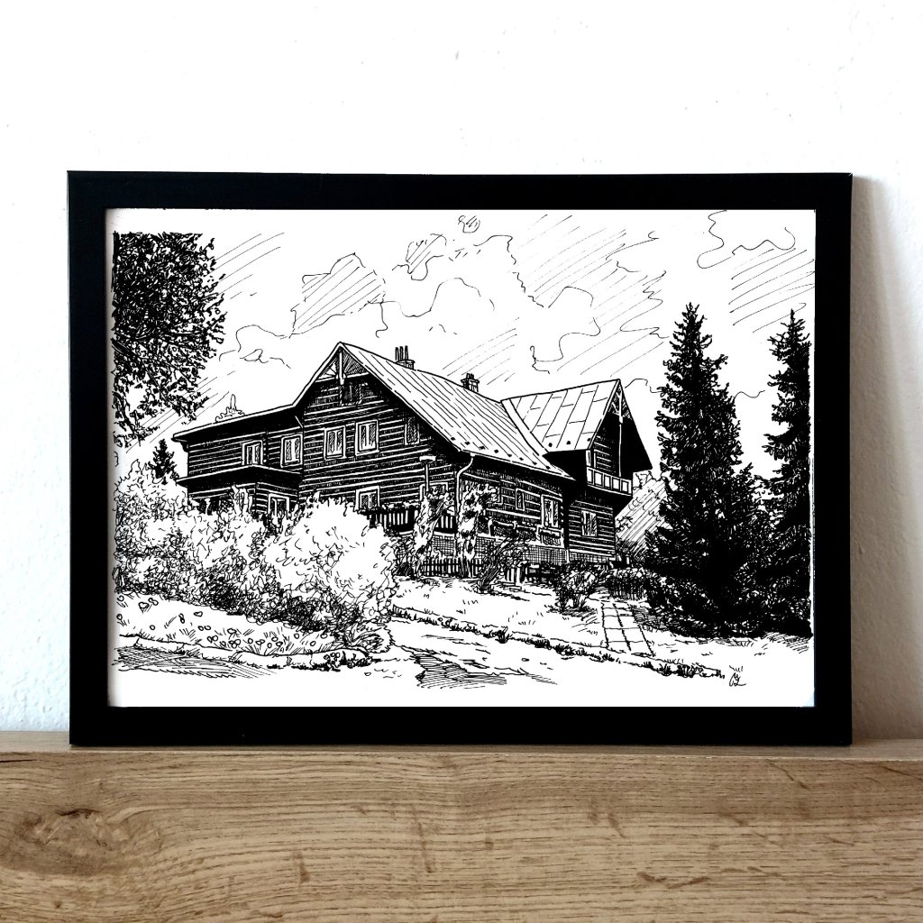 Pokud se Vám tento typ kresby líbí, neváhejte se mi ozvat - ráda nakreslím třeba Váš vlastní domek nebo jinou architektonickou památku!
