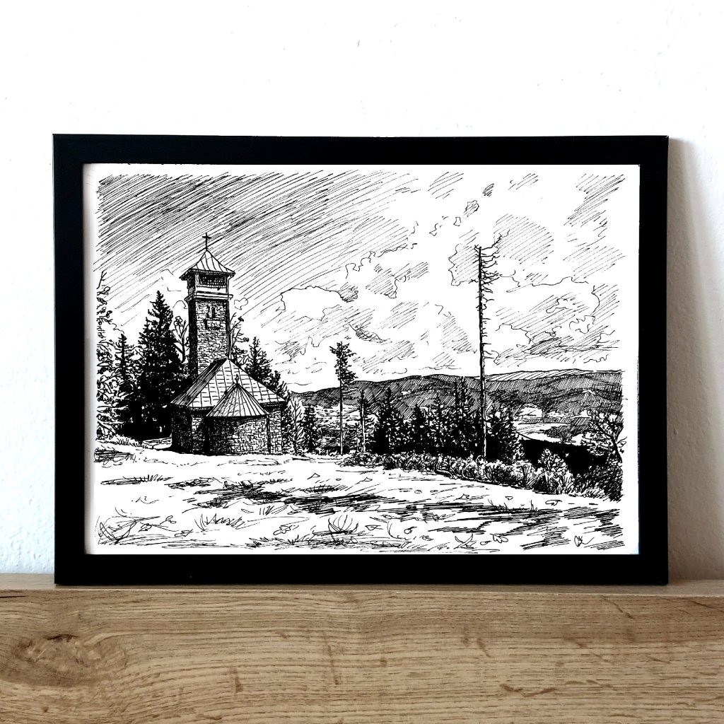 Tento obrázek je součástí Beskydského kalendáře, ve kterém zachycuji turistické chaty a rozhledny mých milovaných Beskyd, odkud pocházím.