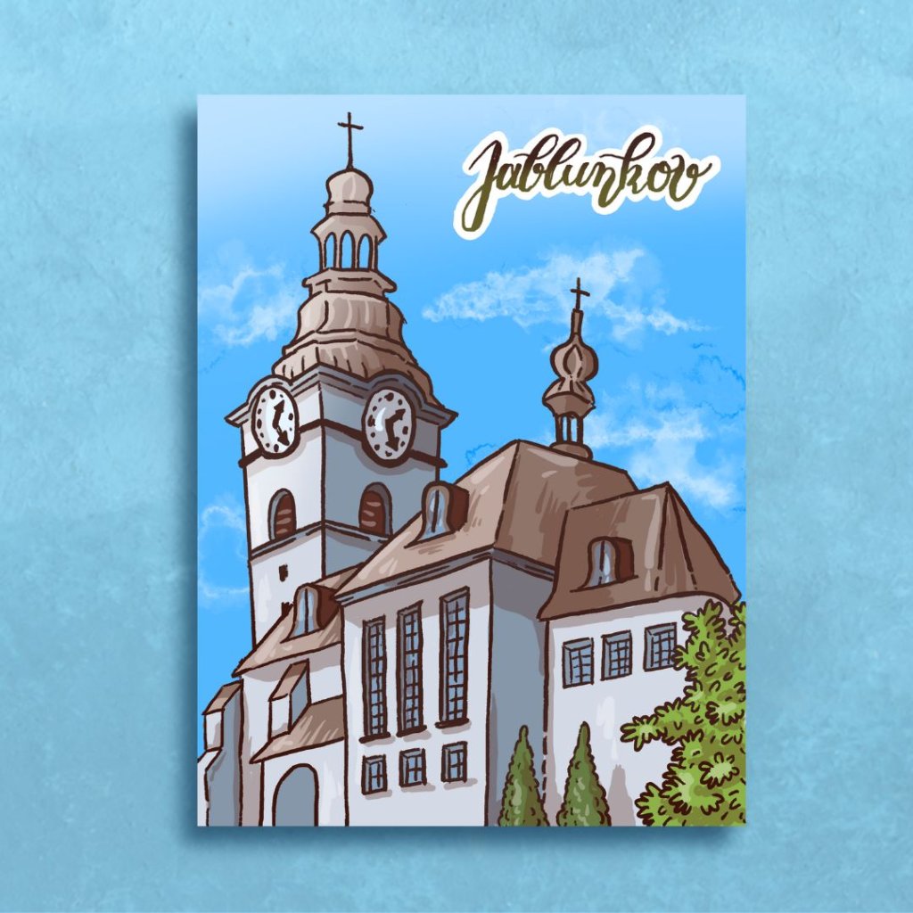Na pohlednici je zachycený katolický kostel u jablunkovského náměstí. Doporučuji navštívit. 😘 A když už tam budete, zajděte si na úžasný zákusek do vyhlášené cukrárny Kolesa!