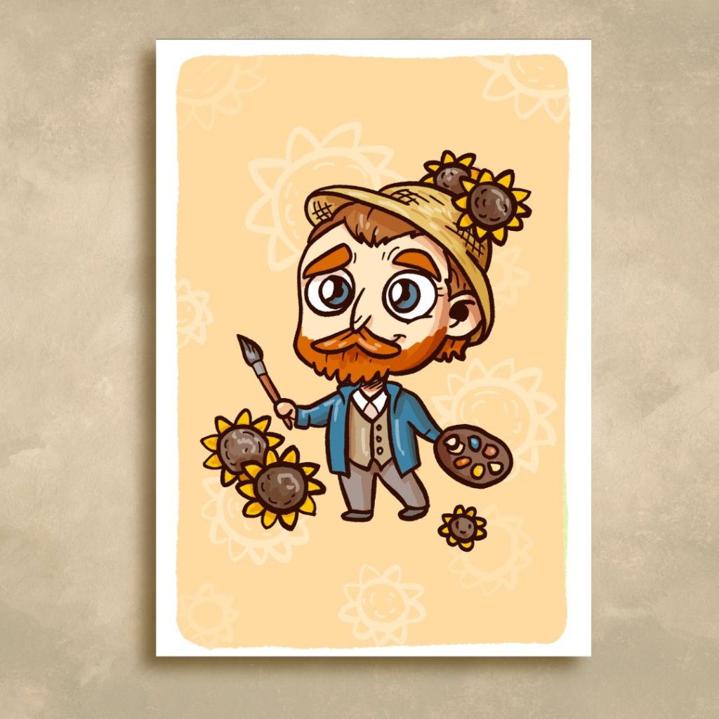 Roztomilého malíře Vincenta van Gogha můžete poslat svým přátelům jako pohlednici, nebo si ho můžete jako já vyvěsit na nástěnku jako malý obrázek.