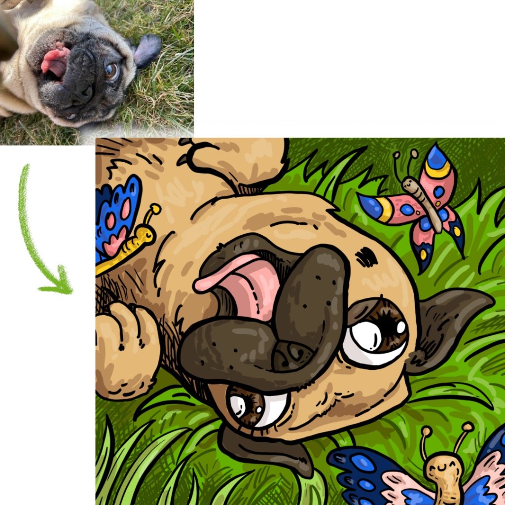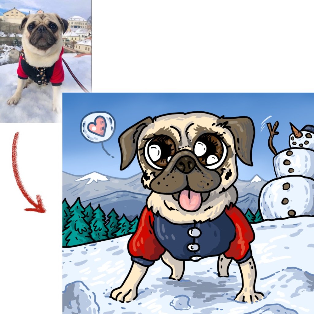 Na e-mail mi zašlete fotku svého pejska, kočičky, papouška, morčete nebo klidně krokodýla a já vám ho překreslím do komiksového stylu.