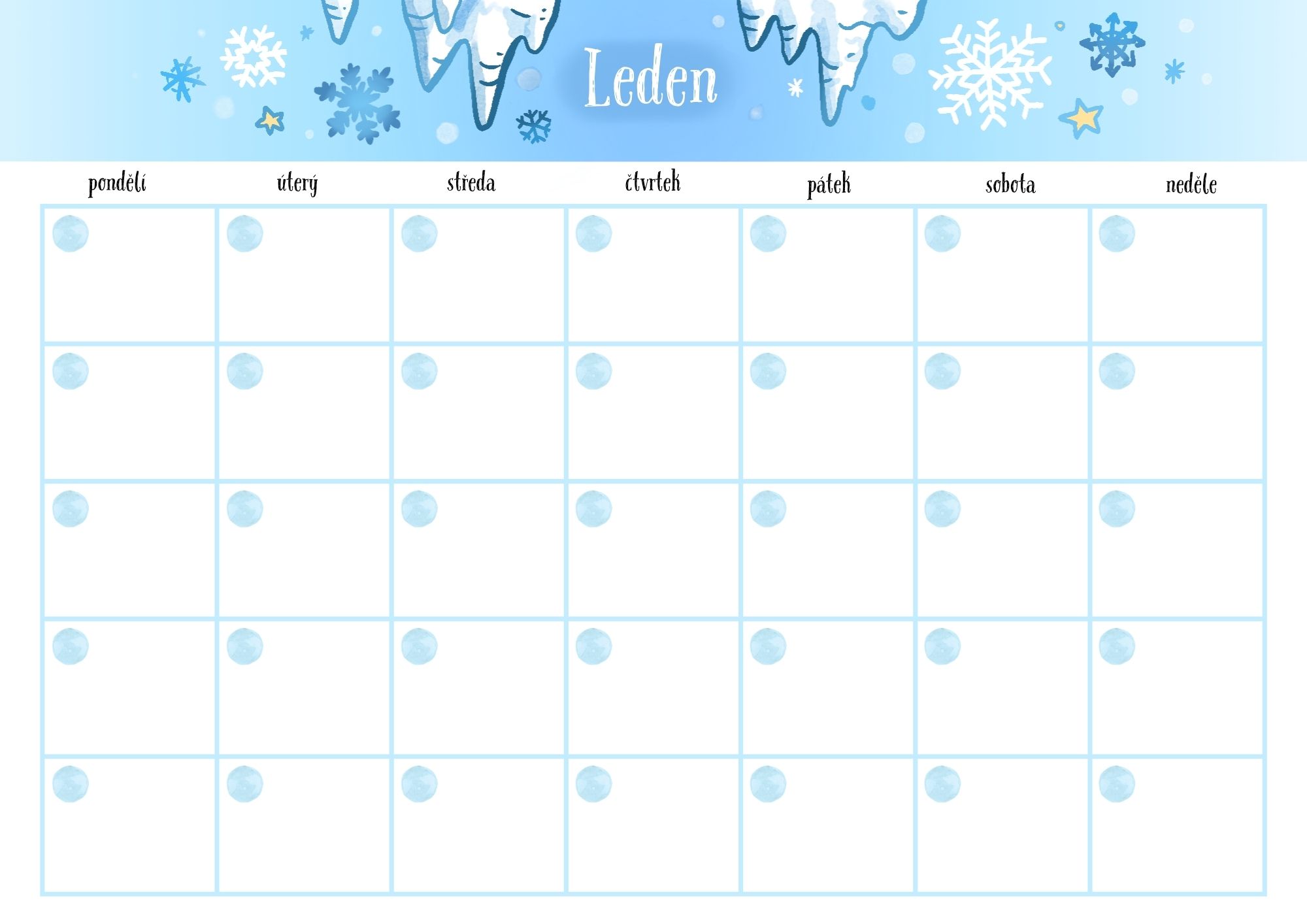 Měsíční plánovač - LEDEN - ke stažení zdarma