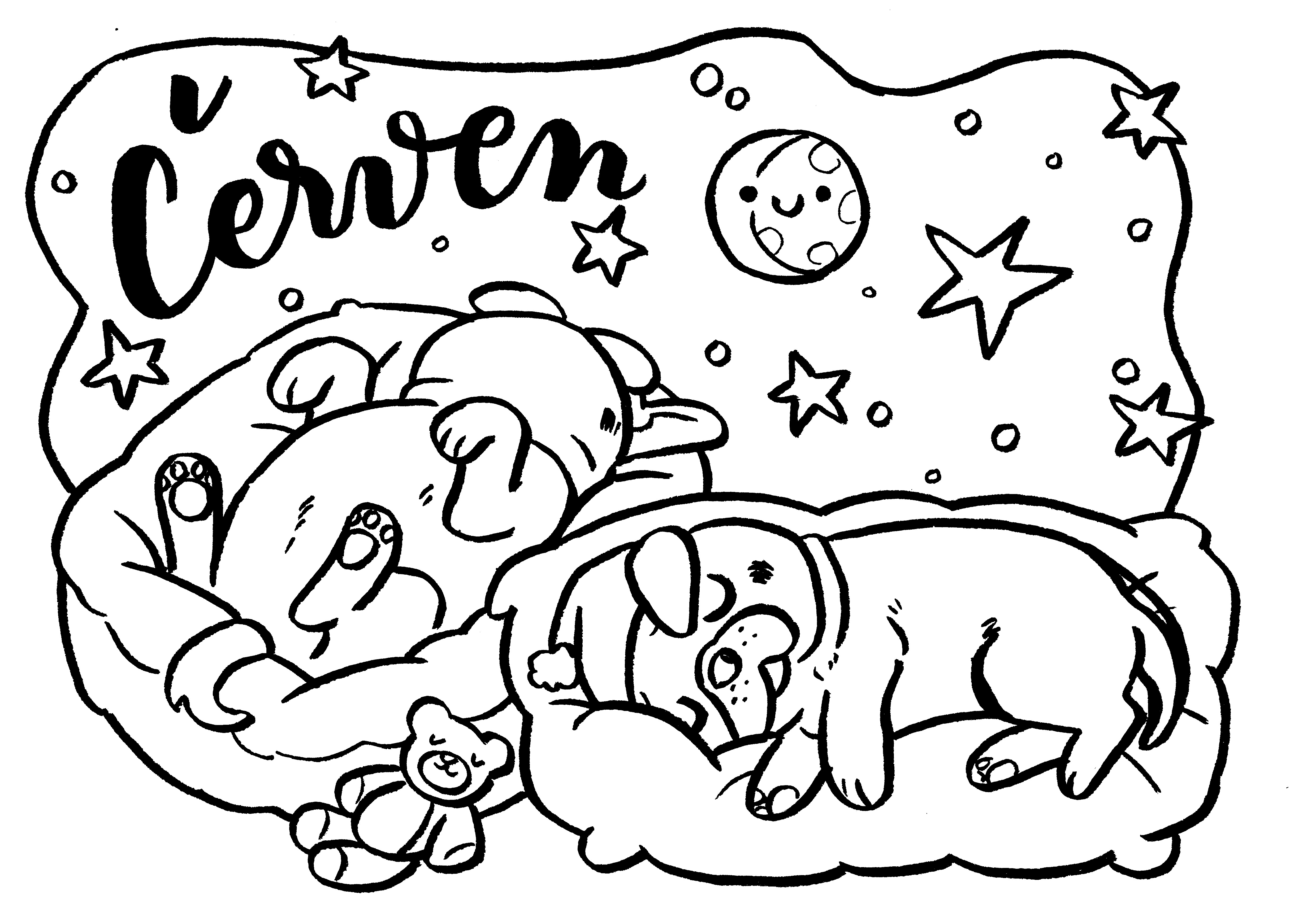 Tahle mopsolovánka je moje zdaleka nejoblíbenější. Mě bavilo ji kreslit a věřím, že vás bude bavit ji vybarvovat! 🖍️